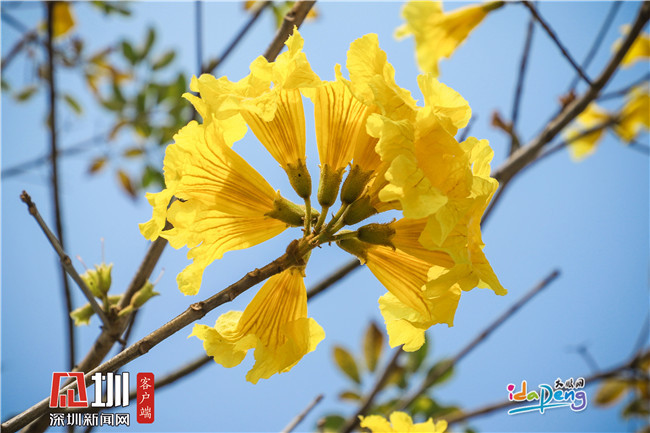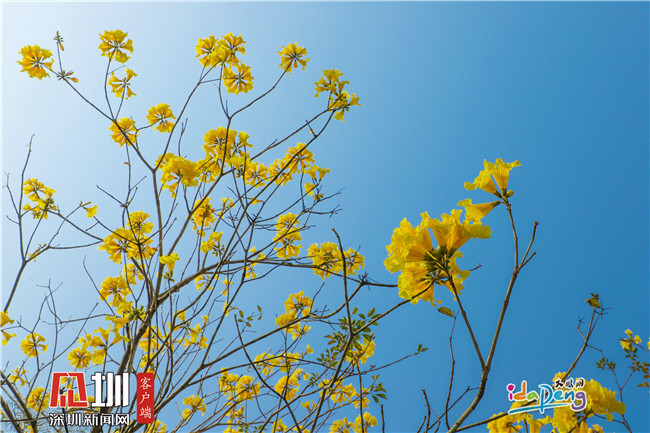 蓝天下的黄花风铃木