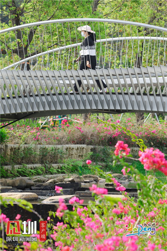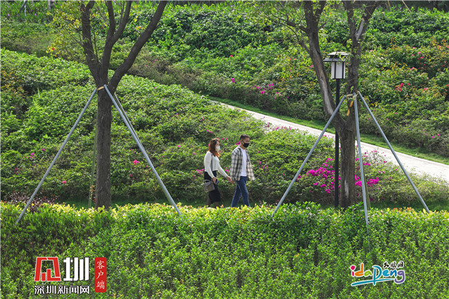 3月16日,记者来到大鹏新区禾塘山水公园一带发现,春的气息已将公园四处装扮成一幅生机昂扬的山水画卷,到处花团锦簇,吸引了不少游人前来观赏踏春。近期疫情有所缓解,居民们都陆续走出家门,足见大家对走出家门、畅快享受春天气息的渴望。居民们都自觉佩戴口罩、不聚集,做到赏春、防疫两不误。