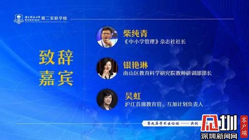 论坛邀请《中小学管理》杂志社社长柴纯青、南山区教育科学研究院教师研训部部长银艳琳、沪江首席教育官吴虹等三位嘉宾致辞,为教师专业发展建言。